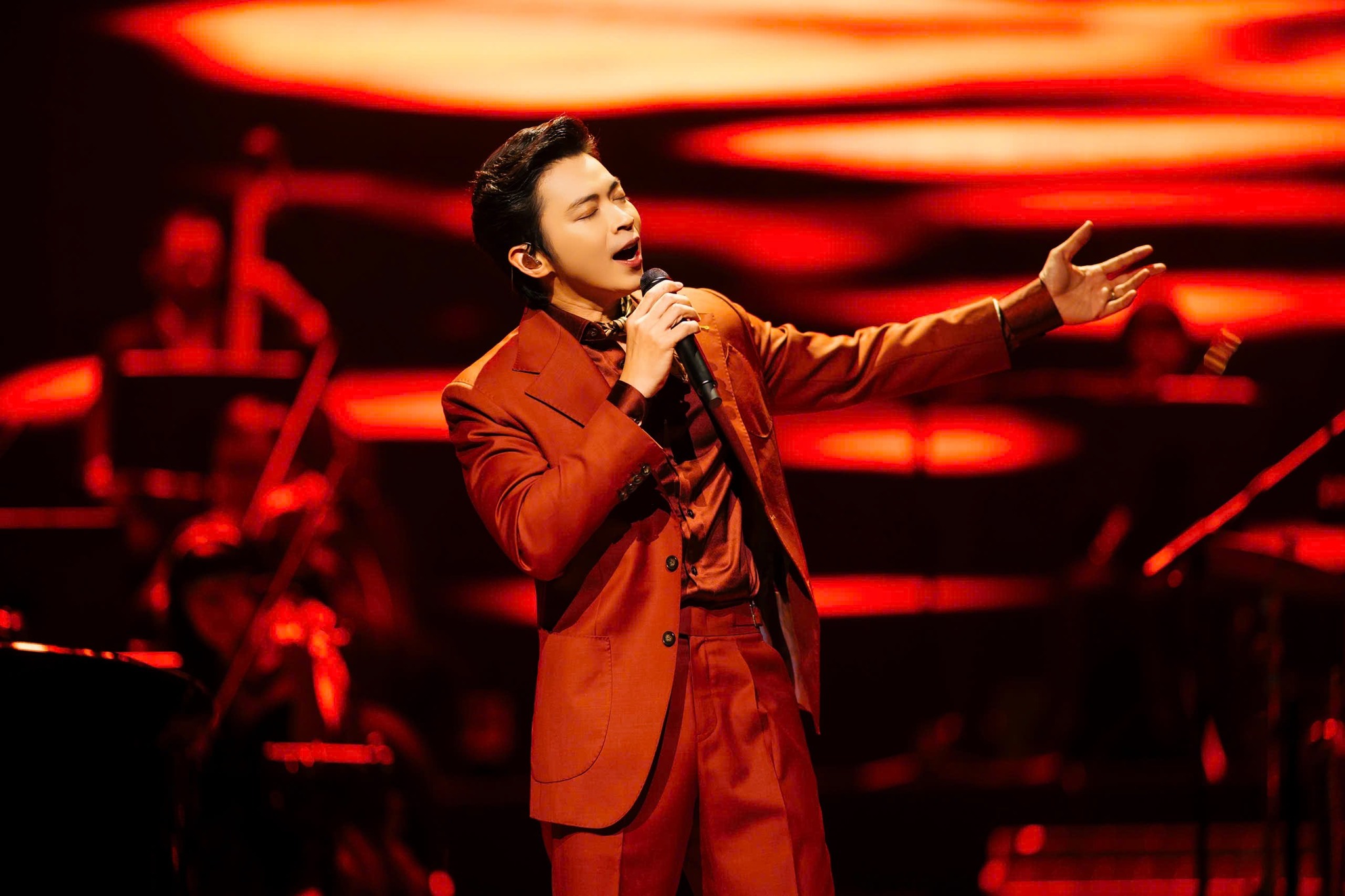 Amid the nostalgic autumn hues of the stage, singer Lân Nhã appeared in a warm brick-red suit. The deep, rich red paired with a ton-sur-ton...