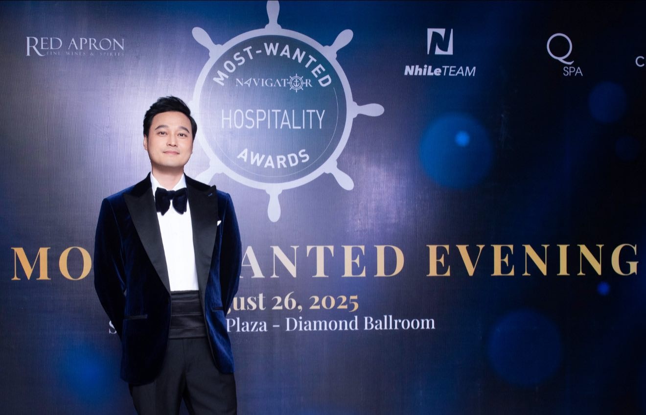 At the Most-Wanted Evening 2025 hosted at Sofitel Saigon, singer Quang Vinh made a refined appearance in a navy velvet tuxedo tailored exclusively by Kim...