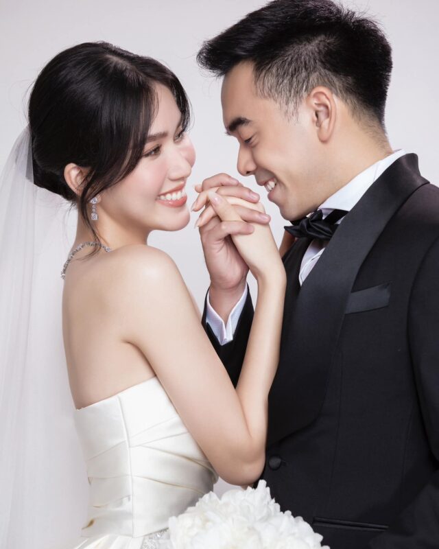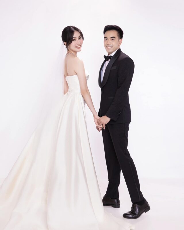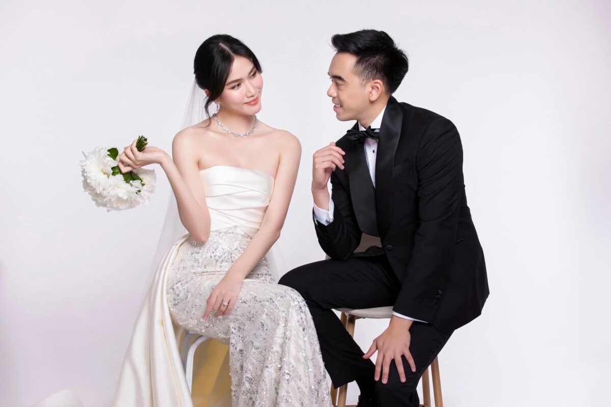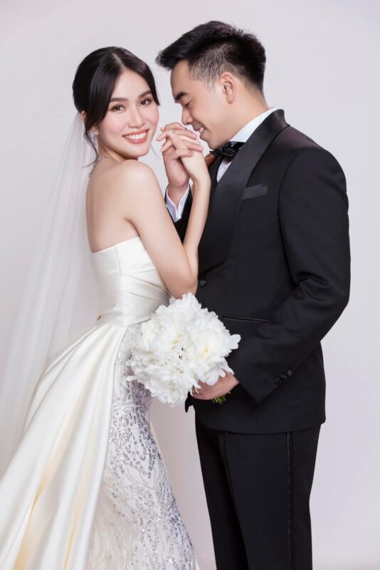 Join us in admiring the radiant, joy-filled moments of Á hậu Phương Anh and entrepreneur Đức Hồ in their Kim Bespoke wedding attire.