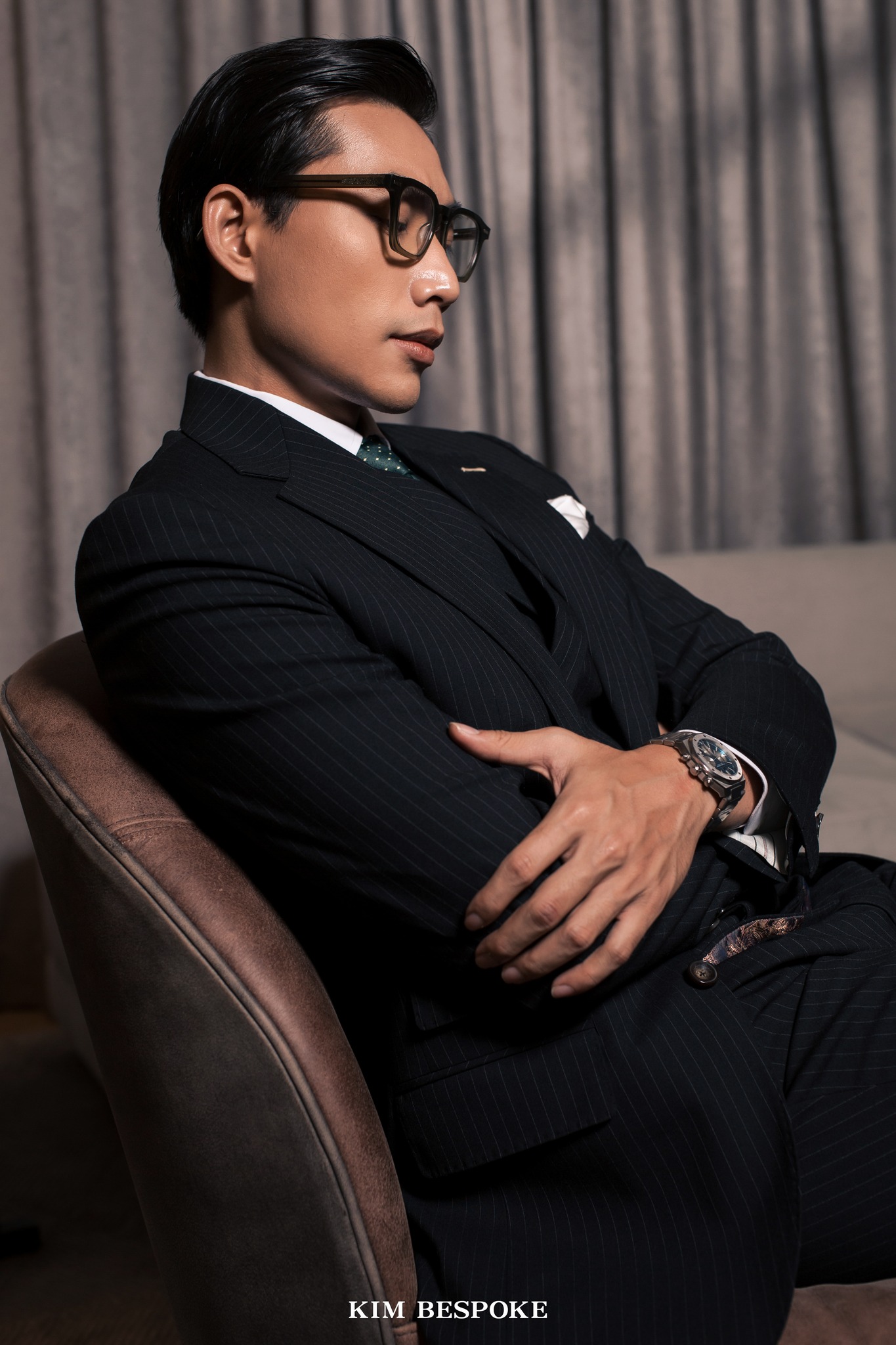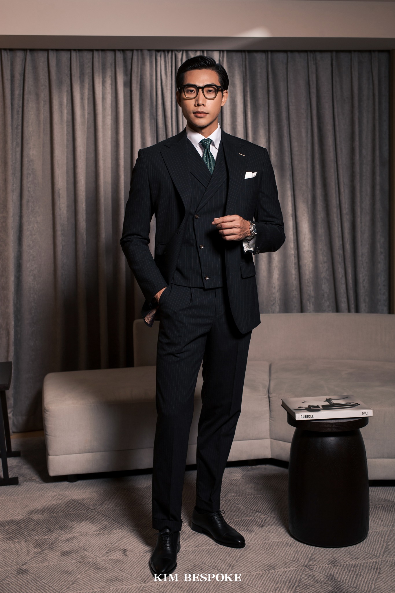 Designed as a three-piece suit, Noir allows gentlemen to radiate an enigmatic charm that naturally draws attention. Subtle pinstripe detailing adds a distinctive visual effect, enhancing the suit’s strength and authority. This combination ensures the wearer feels confident and commanding in any setting.