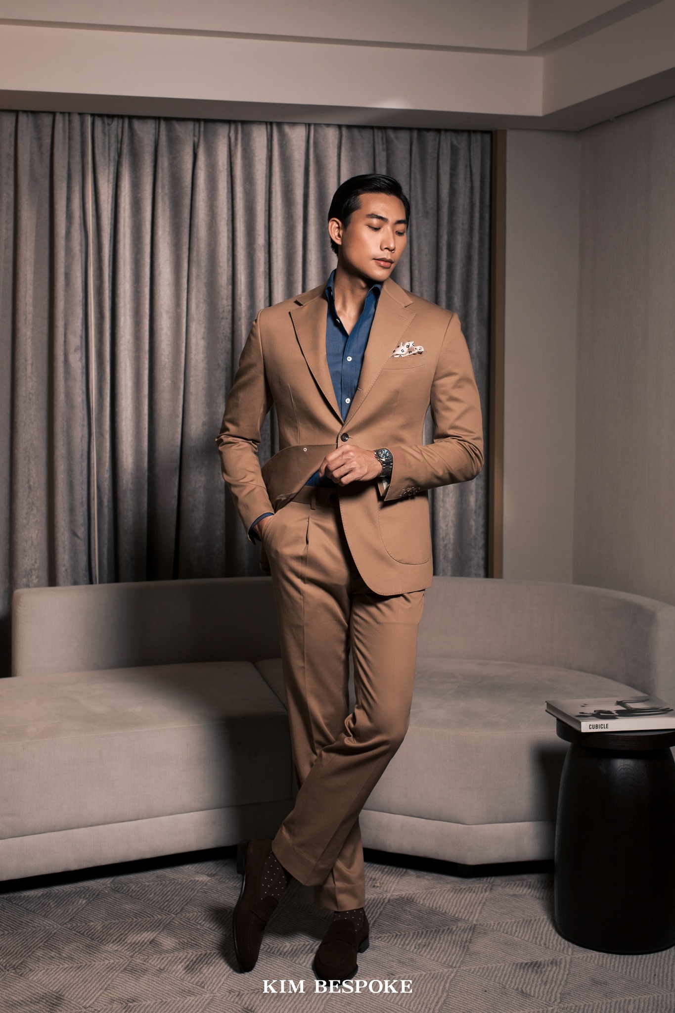 Resort Tan is more than just a suit — it’s an inspiration, evoking the relaxed, carefree feeling of a sun-drenched beach getaway. The “sun tan” tone, reminiscent of a resort vacation along the Italian coast, inspires a khaki suit that exudes effortless charm and Mediterranean freedom.