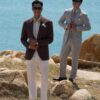 The ensemble is completed with a grey 3-piece suit for the groomsman, striking a perfect balance between formality and freedom.