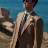 Its deep moss green—like timeworn lichen over stone—speaks of a beauty that is quiet yet enduring. Crafted in wool silk linen with a classic 3-piece silhouette, this suit holds its form while remaining effortlessly light and breathable in movement.