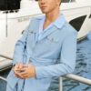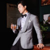 With the goal of highlighting personal style and elevating the modern, youthful image of our gentlemen, Kim Bespoke thoughtfully selected a herringbone-woven fabric featuring the distinctive Solaro effect from Officine Paladino. Paired with a Cuban-collar shirt and a suit jacket crafted with notch lapels in a harmonious peach tone, the Peach Suit radiates vivid charm and delivers a message of positivity and joy for the summer season.