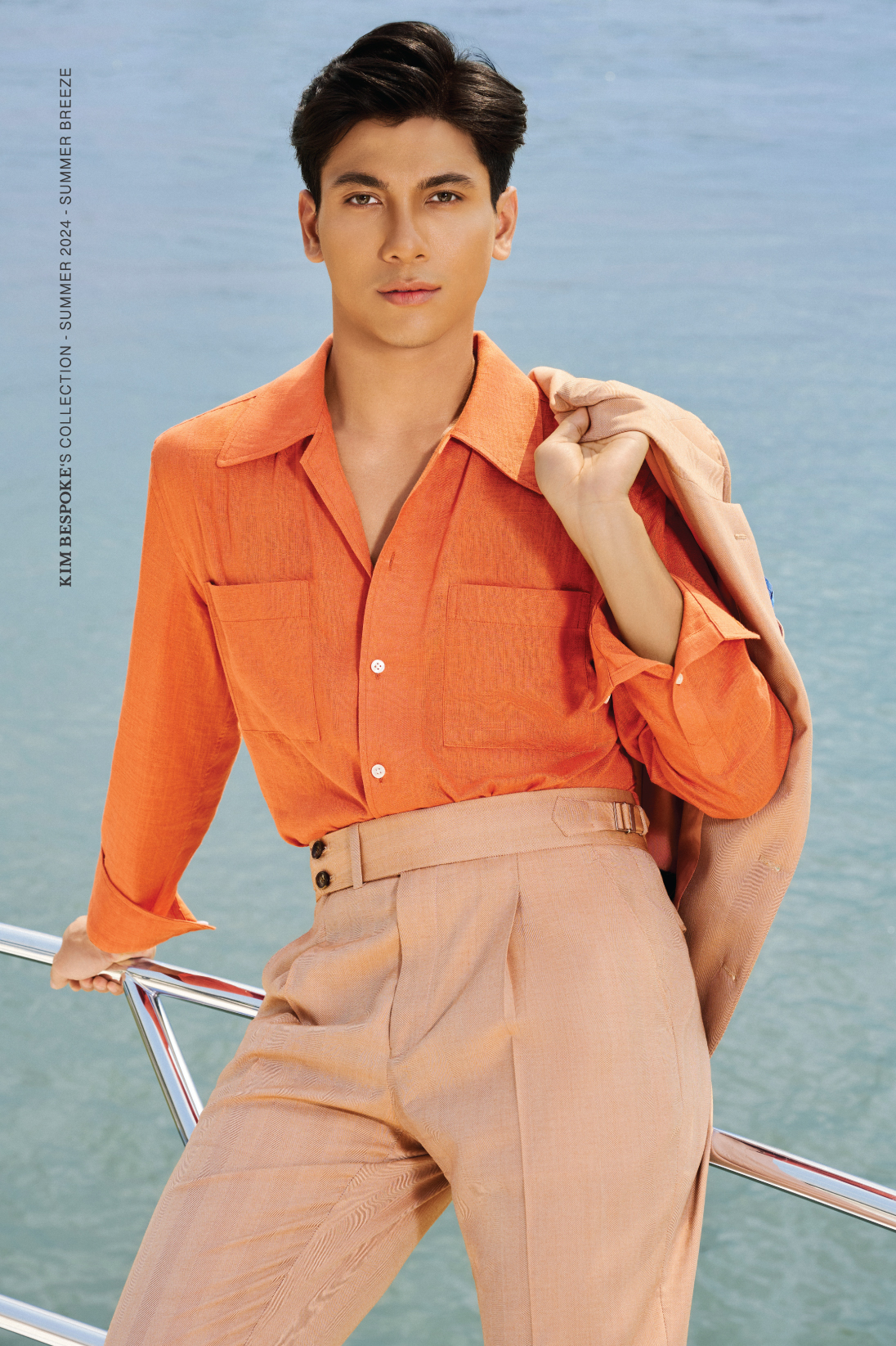 The colors of one’s wardrobe always reflect a part of their personal style and fashion language. That is why Kim Bespoke begins the Summer Breeze collection with a soft peach-orange suit (Peach Fuzz) — this year’s signature shade.
